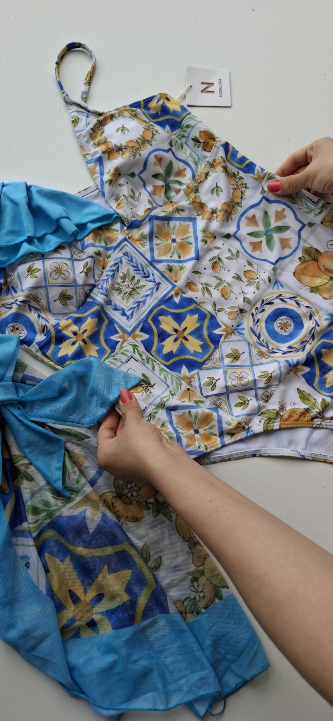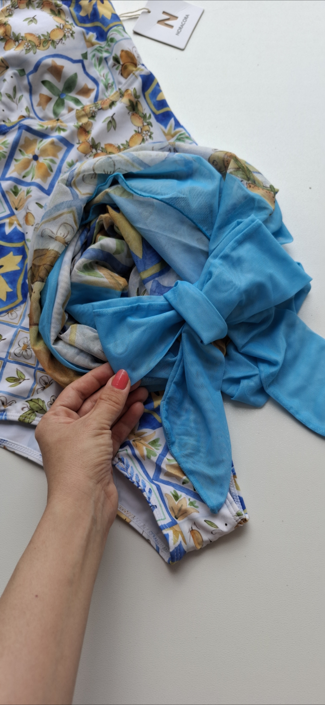 ست مایو و رومایویی وارداتی از برندvivigor کاربسیارشیک با تنخورخیلی عالی یه رو مایویی از طرح خودش داره که میتونید دورکمرتون ببندیدوباهاش ست کنید مناسب سایز 40 42 44 پددار